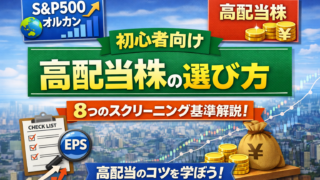 高配当株に興味はあるけど選び方がわからない初心者向けに、配当利回りの基本から8つのスクリーニング基準まで解説。オルカンやS&P500との違いもわかりやすく紹介します。